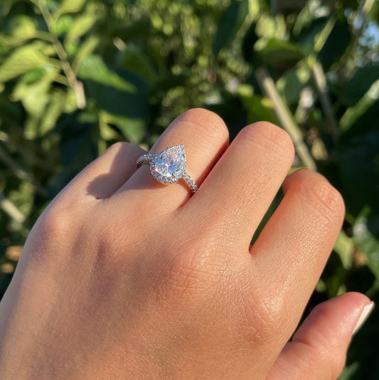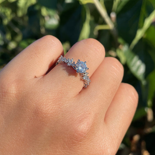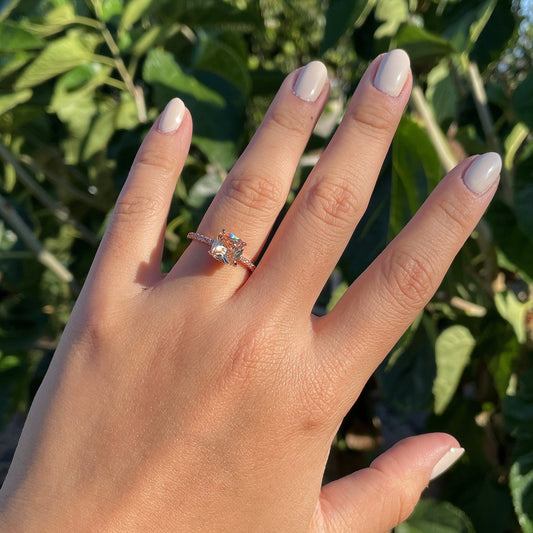 Cushion Diamond Double Pave Basket Wedding Ring, Champagne Crystal Engagement Solitaire Ring, Affordable Sustainable Korean Jewelry