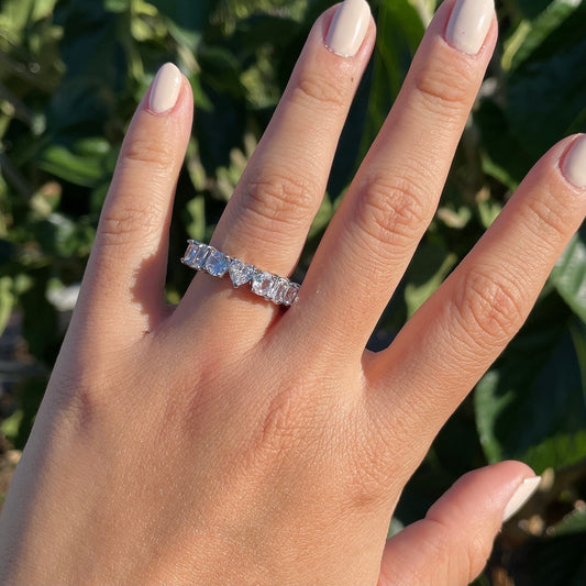 Trio Diamond Unique Eternity Band, Rectangle Round Heart Crystal Engagement Wedding Band, Affordable Sustainable Korean Jewelry