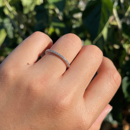 Dainty Round Diamond Eternity Band, Micro Pave Crystal Engagement Wedding Band, Affordable Sustainable Korean Jewelry