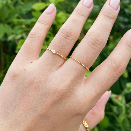 Minimalist Dainty Round Beads Ring, Tiny Crystal Stackable Band, 925 Silver 18K Gold Plated, Affordable Sustainable Korean Jewelry