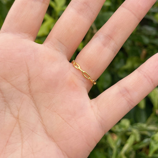 Minimalist Dainty Clip Chain Ring, Gold Stacking Link Band, 925 Silver 18K Gold Plated, Affordable Sustainable Korean Jewelry
