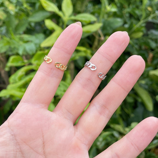 Minimalist Chunky Cuban Chain Open Ring, Gold Curb Link Stacking Band, 925 Silver 18K Gold Plated, Affordable Sustainable Korean Jewelry