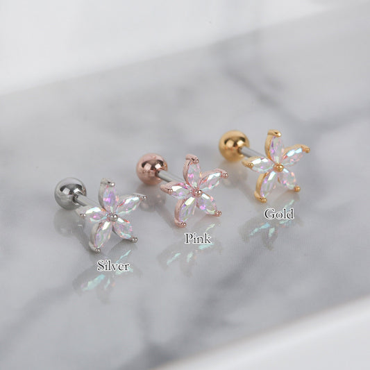 KURA Piercing Type Earrings | Surgical Steel Piercing | Helix Barbell Stud | Flower Cartilage Earrings | Elegant Lobe Pair Earring