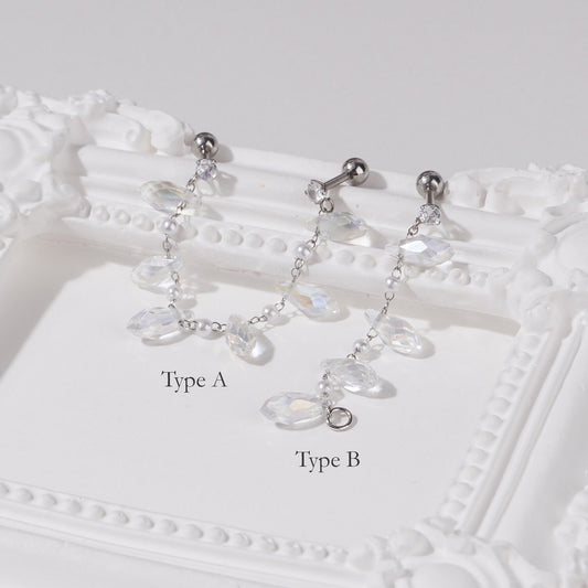 Luminia Piercing Type Earrings | Connected Surgical Steel Piercing | Helix Barbell Stud | Elegant Cartilage Crystal Earrings