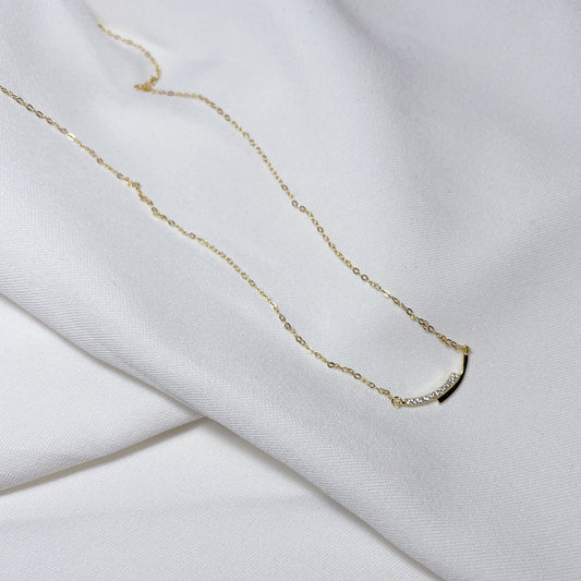 Smile Arc CZ Pendant Necklace, 925 Silver 14K Gold Plated Jewelry, Charm Chain Set, Link Chain, Korean Simple Dainty Style