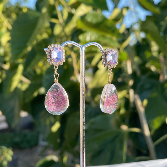 Pendientes colgantes Purple Sensation, serie floral minimalista, joyería chapada en oro, estilo delicado coreano