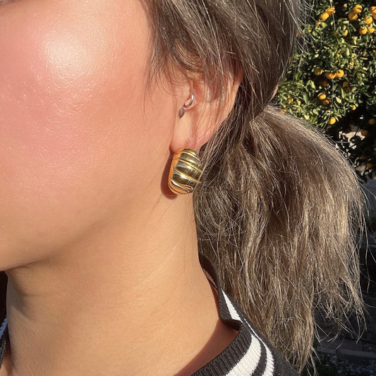 Pendientes de media cúpula de croissant inflado, aros entrelazados gruesos retro de la vieja escuela, joyería coreana sostenible asequible chapada en oro de 18 quilates