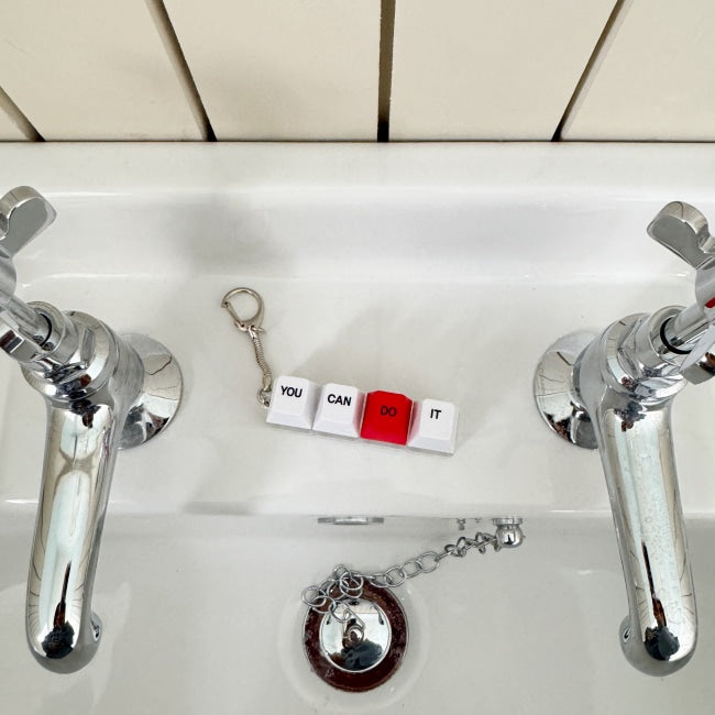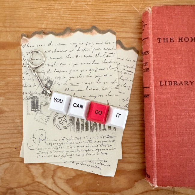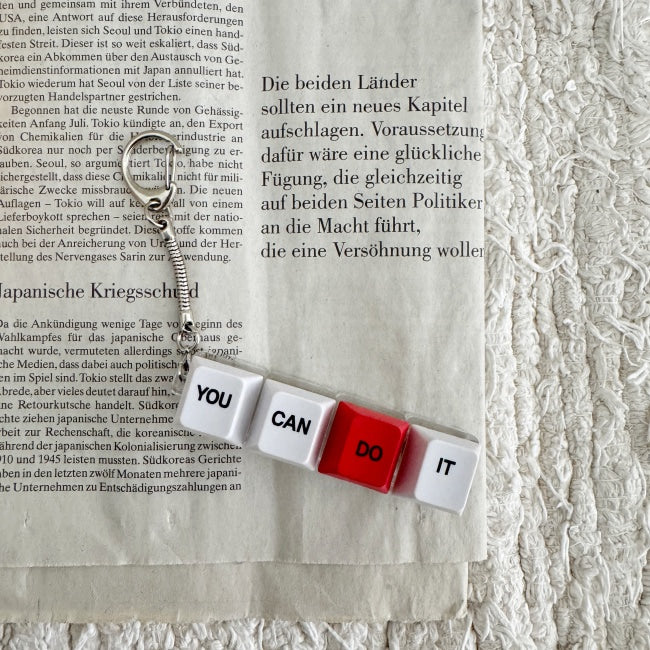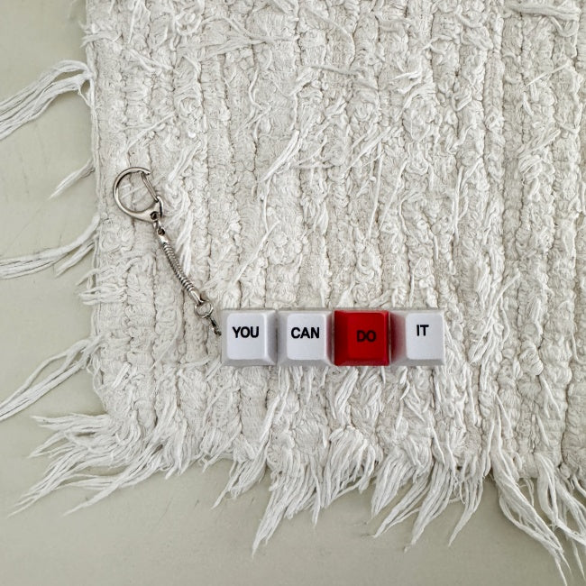 Llavero con forma de tecla PUEDES HACERLO: amuleto motivacional con luz y clic para teclado