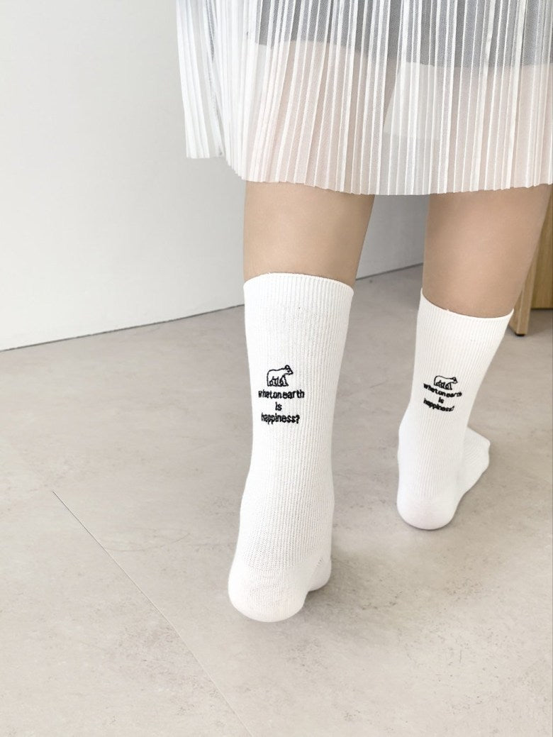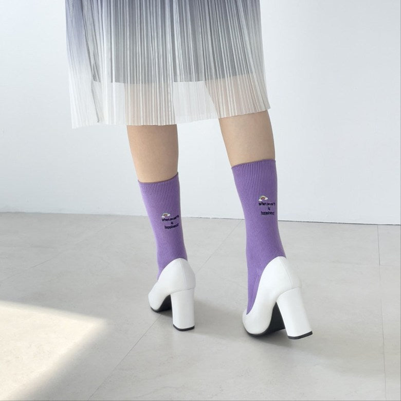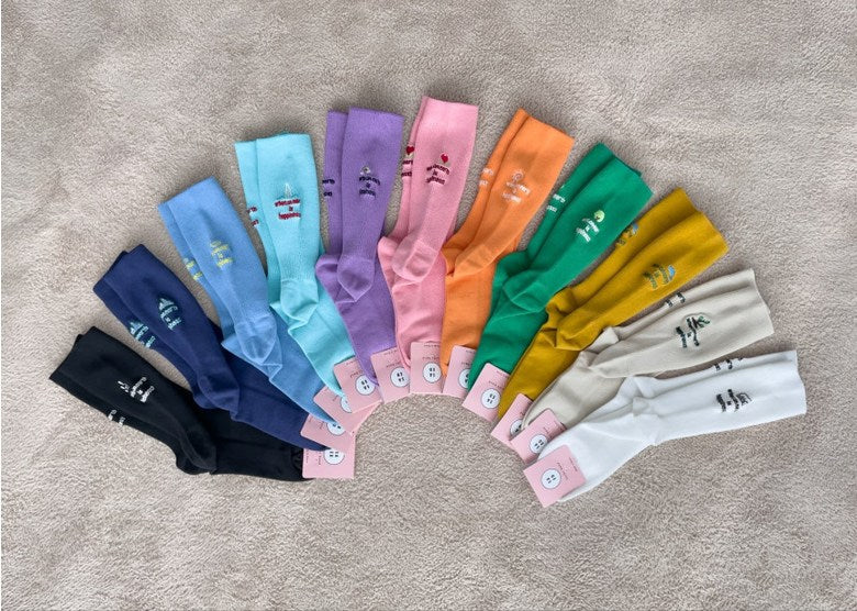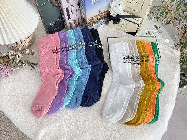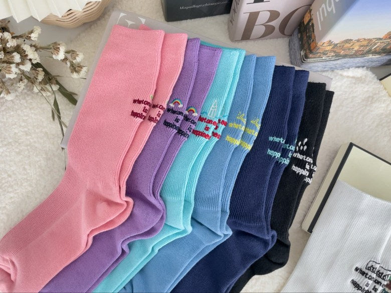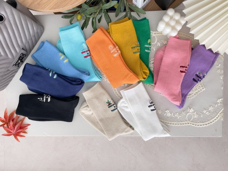 Designed for those who love cute, uplifting fashion, these socks make a perfect daily accessory or a thoughtful gift for a friend who loves all things joyful, Korean-style, and cozy.