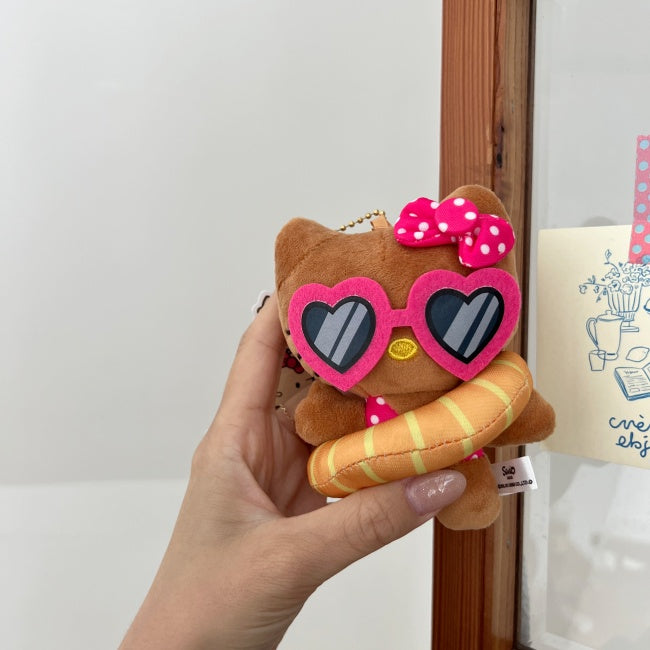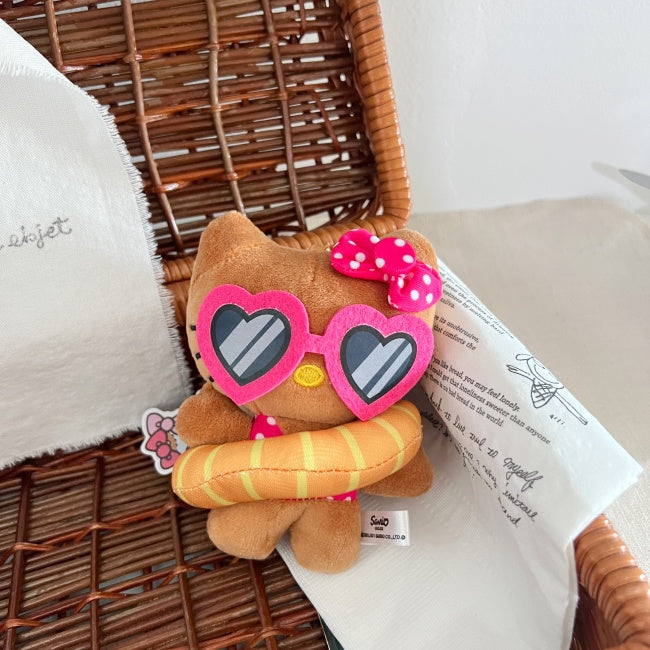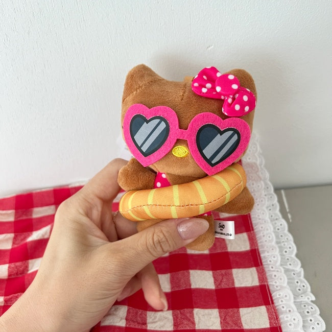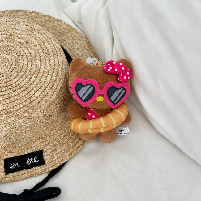 Say hello to sunshine with the Rita Keyring – the ultimate summer-ready Hello Kitty plush doll! Dressed in an adorable polka dot swimsuit, rocking her signature heart-shaped sunglasses, and ready to float away on an orange inflatable tube, Rita brings a burst of vacation vibes wherever she goes.