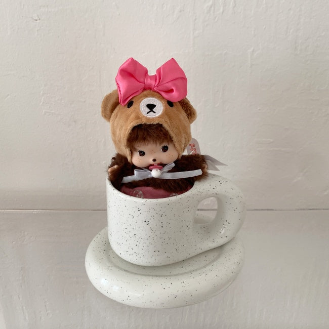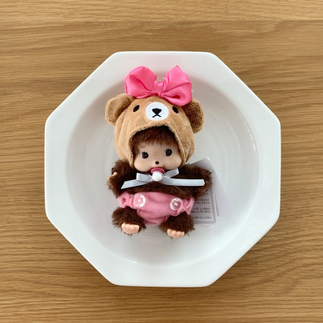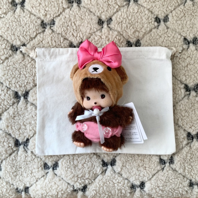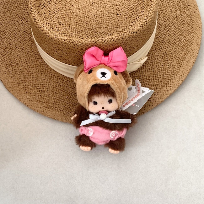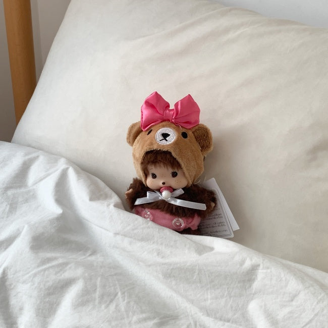 This baby monkey furry doll keychain is dressed in an irresistibly cute plush bear hood with a bright pink ribbon and matching pink overalls. Carefully curated as a best selling item in the doll dress-up trend, Bubble is your go-to charm to elevate any bag, backpack, or keyring with playful, cozy vibes.