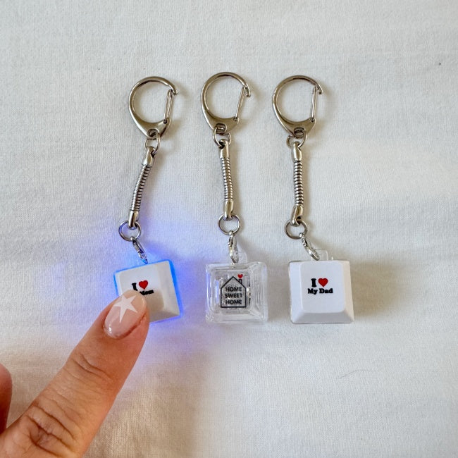 Home Sweet Home Keycap Keychain – Clickable LED Keyboard Charm | Family Gift