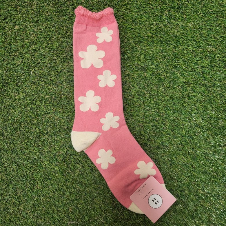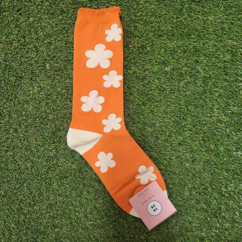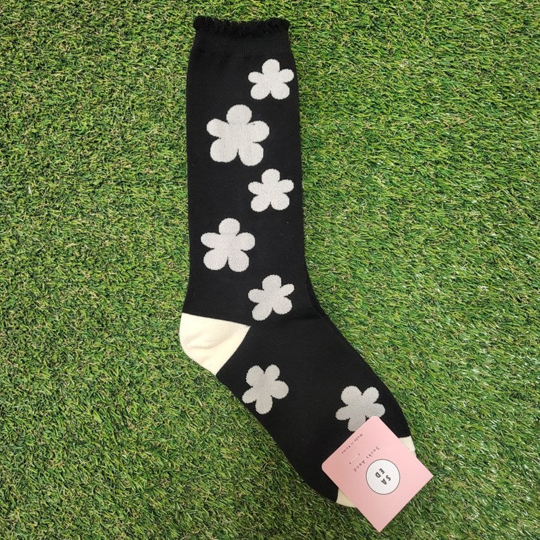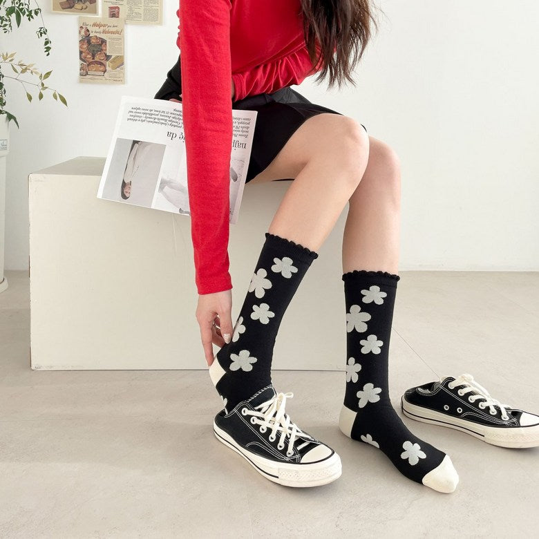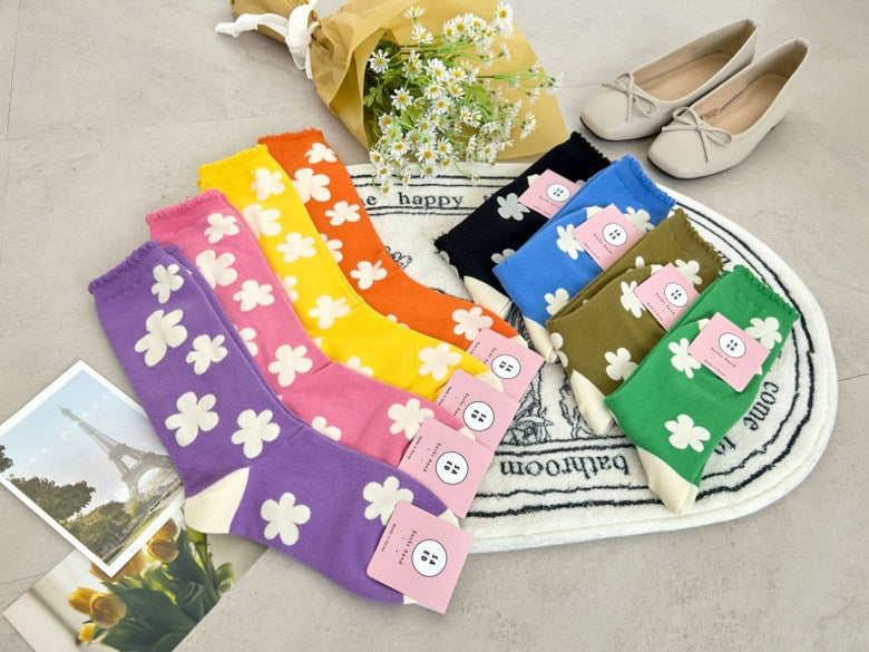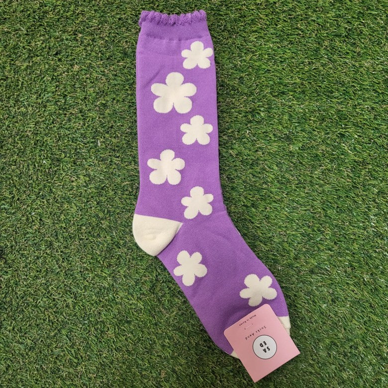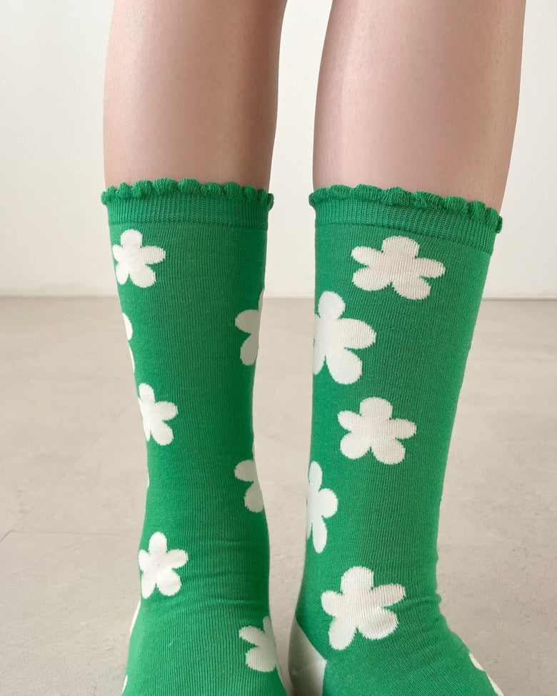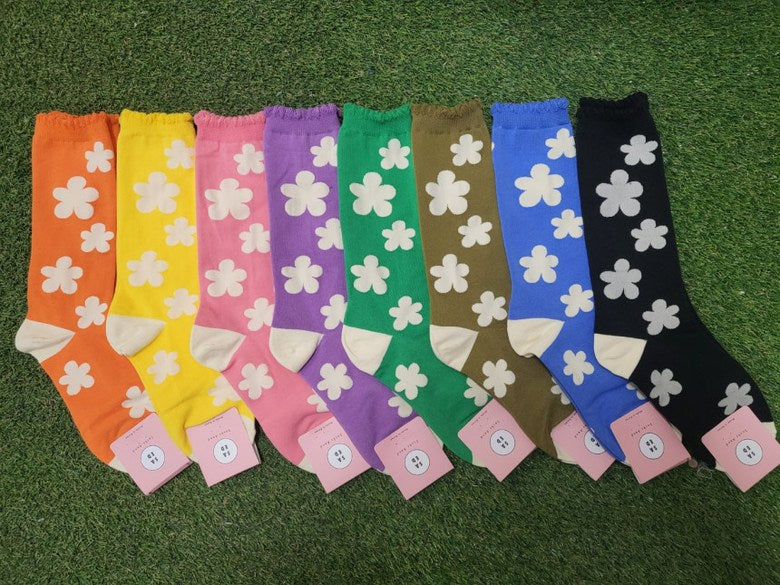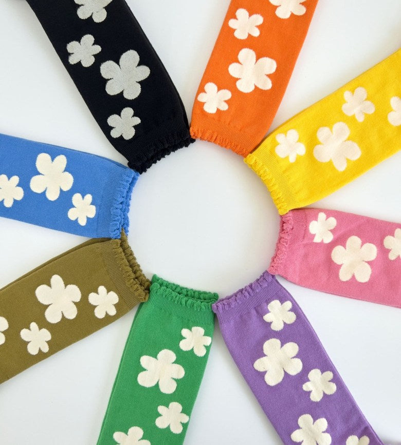 Step into spring all year long with our Phoebe Socks – featuring bold, oversized floral patterns and a delicate scallop edge trim that adds a soft, feminine touch. Made in South Korea with high-quality cotton blend yarns, these statement socks combine playful style with comfortable stretch.