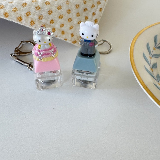 Wedding Kitty Keycap Charm – Clickable Light-Up Mechanical Keyboard Keychain | Bridal Cute Gift
